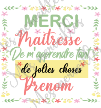 Attention: La couleur sera identique à celle du modèle et la police d'écriture sera la même, il sera impossible de les modifier.