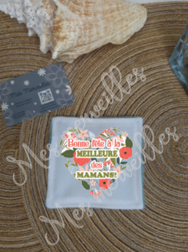 Lingette, chiffon, essuie lunettes micro fibre Maman Cœur Rose Vert