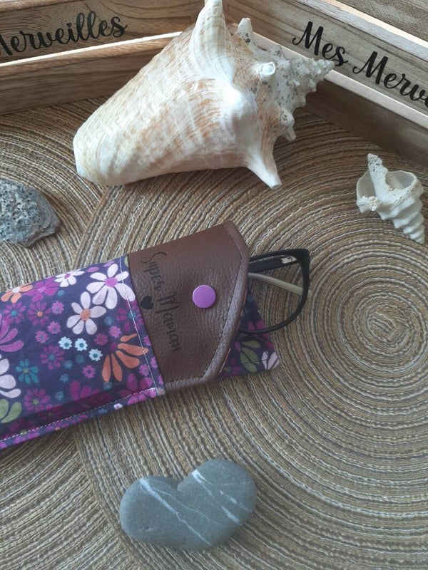 *Étui à lunettes personnalisable Fleurs colorés Violette