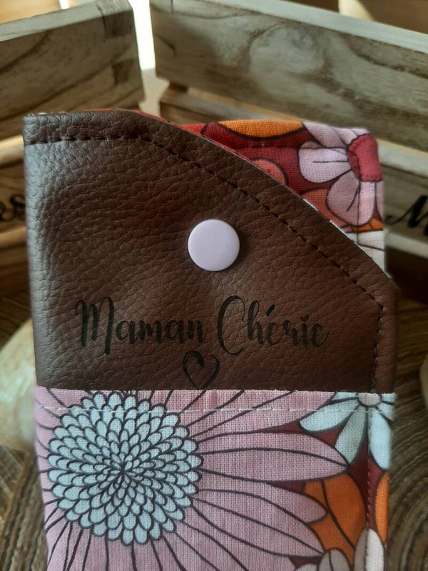 *Étui à lunettes " Fleurs colorés Rose Maman Chérie"